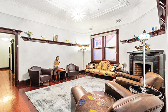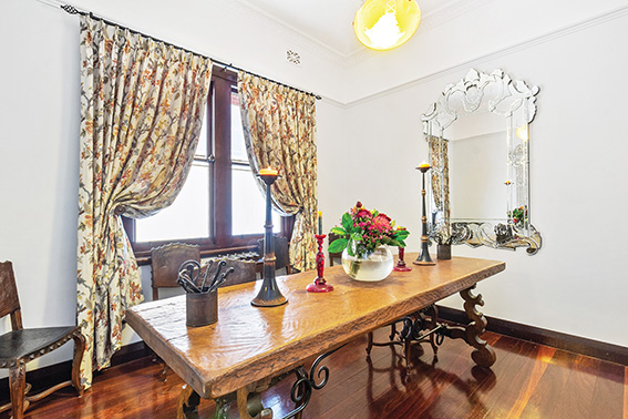 The interior of this apartment is as original as it gets, with art deco jarrah door frames, plate rails and stunning decorative ceilings.