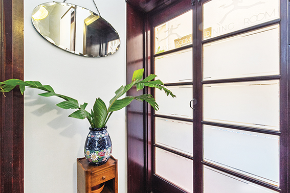 The third bedroom is currently a dining room, where huge ornate, bevelled-glass mirrors (included in the sale) face each other, creating a Citizen Kane infinity effect.