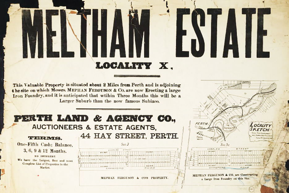Then in 1895, Scottish-born, Victorian-raised industrialist Mephan Ferguson built an iron foundry in Perth for CY O’Connor’s pipeline project, naming it Meltham Estate and the surrounding suburb Falkirk.