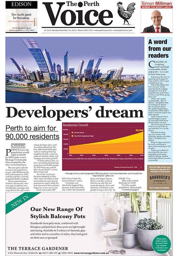 “At this growth rate, by 2035 the City of Perth’s density will be on par with the City of Melbourne of today, and by 2050, the City of Sydney.