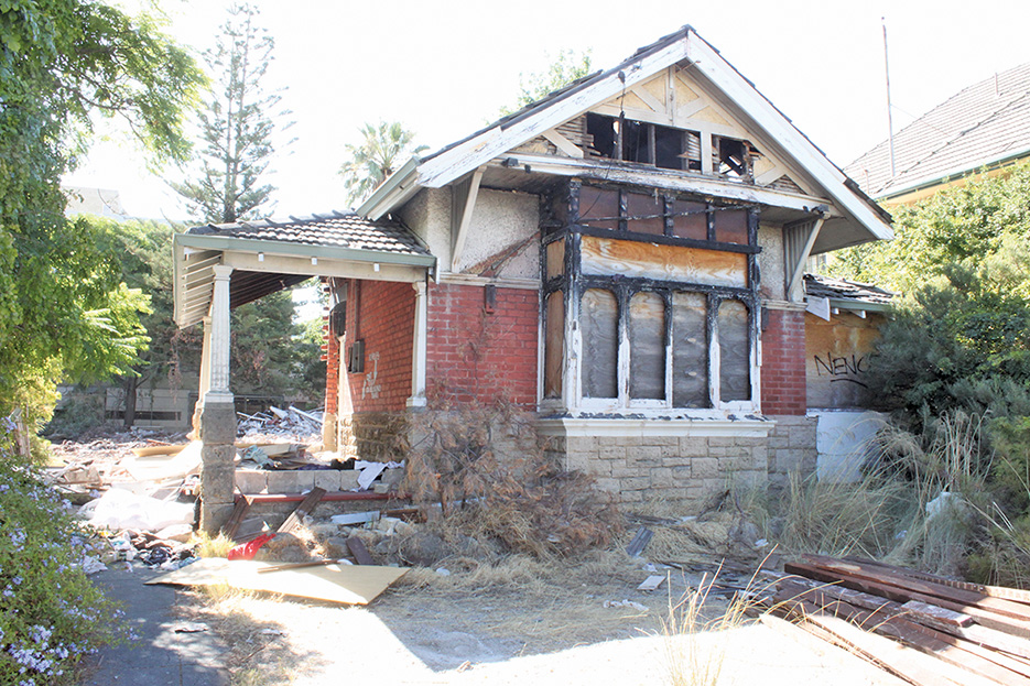 Empty for more than five years, they have long been earmarked for demolition to allow for street widening and the front third of each block is listed as road reserve in the Metropolitan Region Scheme.
