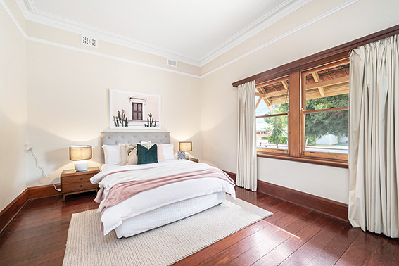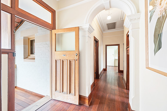Modest-looking from the outside, inside it boasts decorative ceilings and arches, jarrah floors, jarrah framed-double sash windows, and a fire place or two.