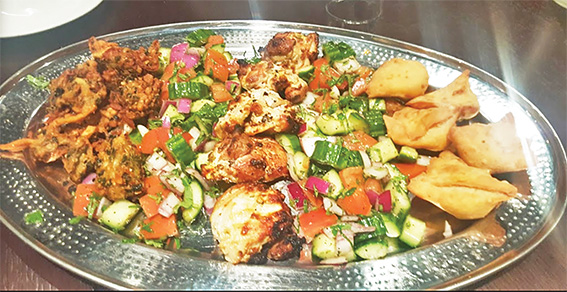 The restaurant does vegetarian ($19.99) and meat ($22.99) thali, and unusually a seafood one ($25.99).