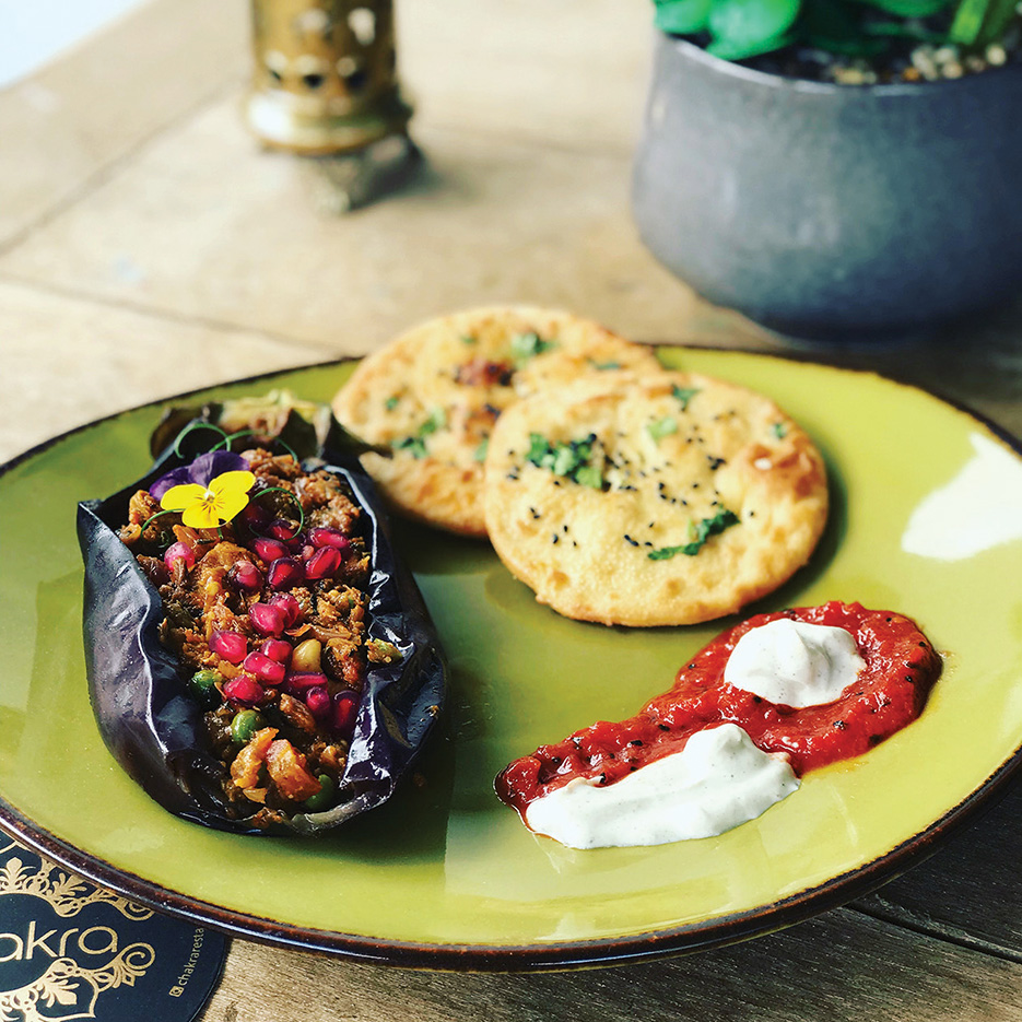 It’s an inventive and broad menu dotted with dishes you may never have seen before, like the kadhi chicken pakoda (dumplings simmered in yoghurt sauce) or the burnt lamb aubergine served in a cashew curry with pomegranate, boondi raita yoghurt sauce, and served with nigella seed naan. Vegan and gluten free options are also plentiful.
