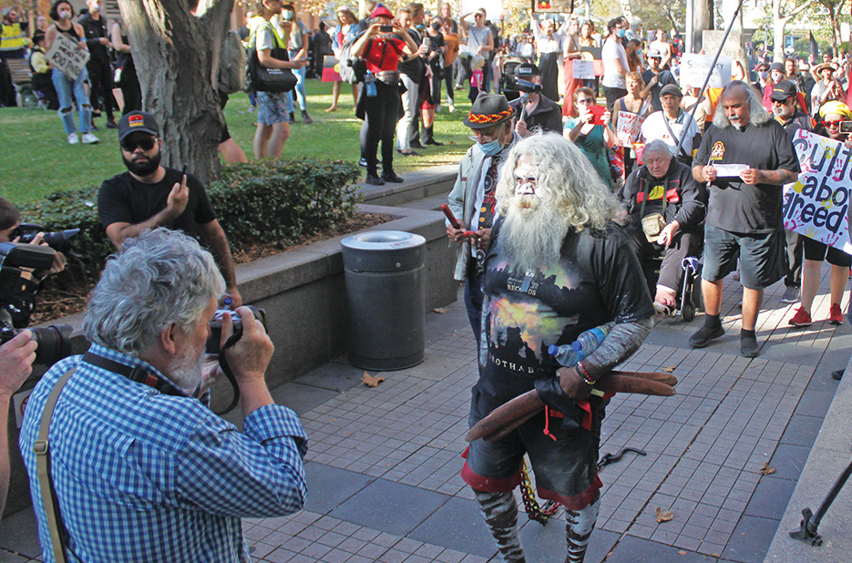 Elders including Robert and Selina Eggington, Uncle Ben Taylor, Herbert Bropho and Donna Nelson led a “Boodja Nyoitch” (land dying) protest outside Rio Tinto’s Perth headquarters on June 9.