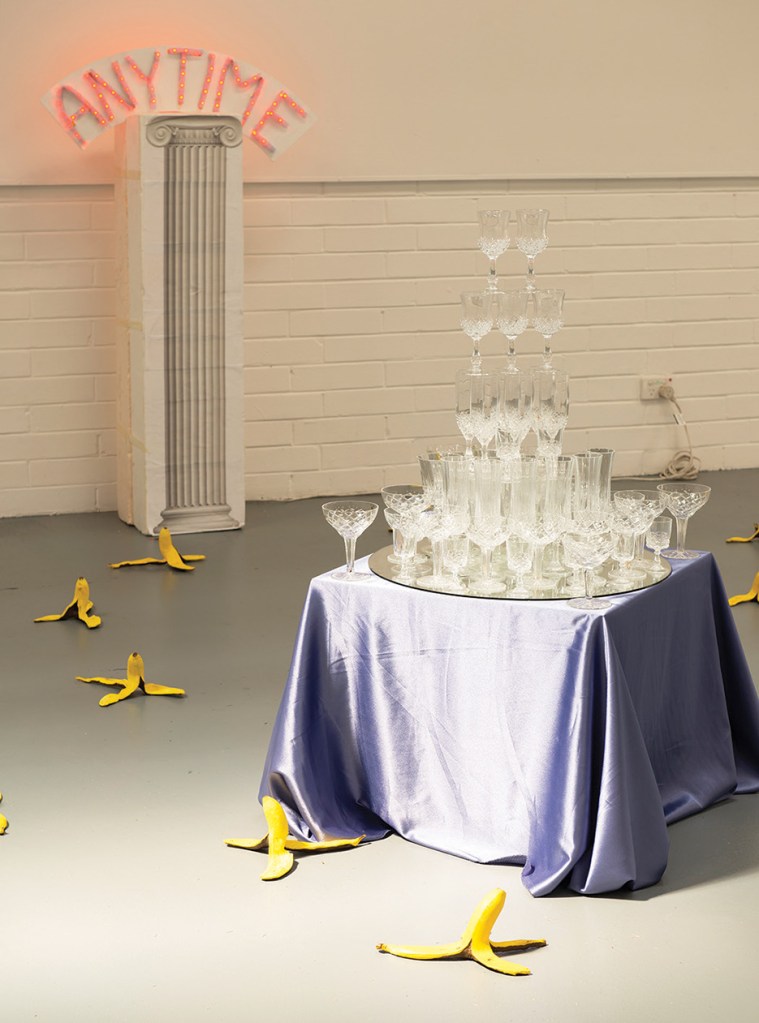 Incorporating memorabilia from the restaurant and tongue-in-cheek references to the fall of the Roman empire, Rogers uses pathos and humour to poke fun at consumerism and capitalism.