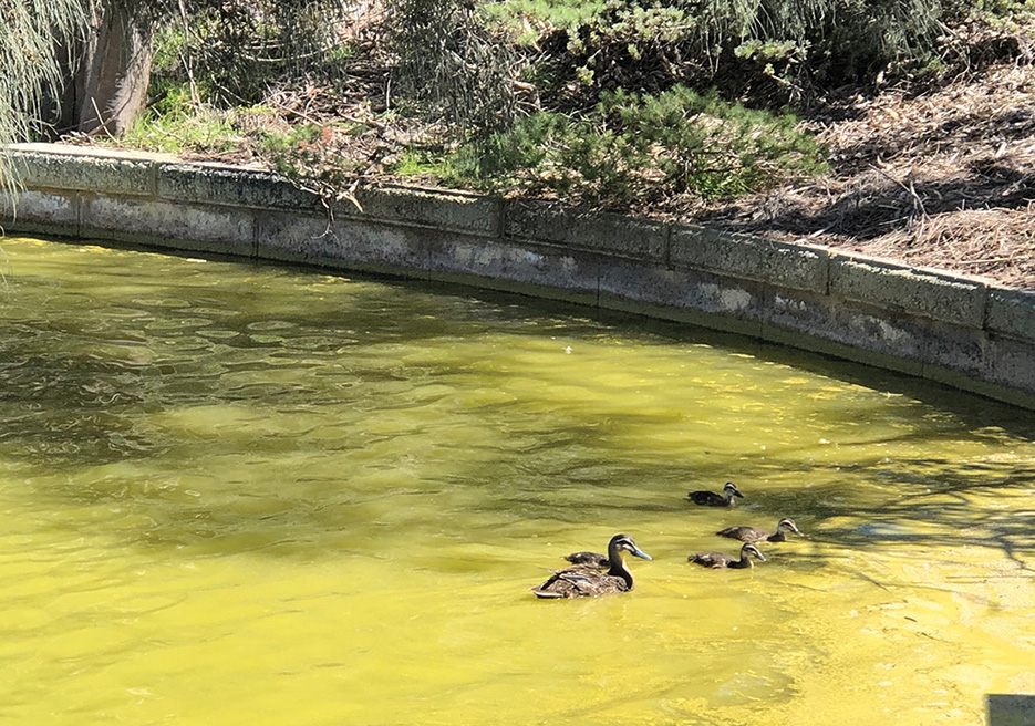 Brearley, Bungana and the Brickworks lakes have abysmal water quality. Low oxygen levels and high phosphorous contamination from storm water runoff, fertilisers and bird poo have led to persistent algal blooms.