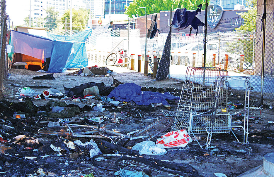 IN a suspected arson attack, Tent City in East Perth went up in flames at 10pm last Wednesday, turning the fenced-in campsite into a potential death trap.