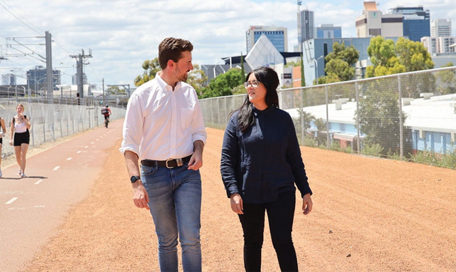 Liberal leader Zak Kirkup announced the plan with Perth Liberal candidate Kylee Veskovich, saying they’d sink the railway line between Mitchell Freeway and Thomas Street so the land could be developed, helping boost the CBD’s population.