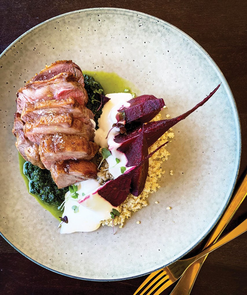 It’s tucked away in the woods with timber decking, wrought iron sculptures and leafy arbours creating a bit of a Secret Garden vibe. An acoustic duo strumming in the corner completed the Sunday afternoon idyll.