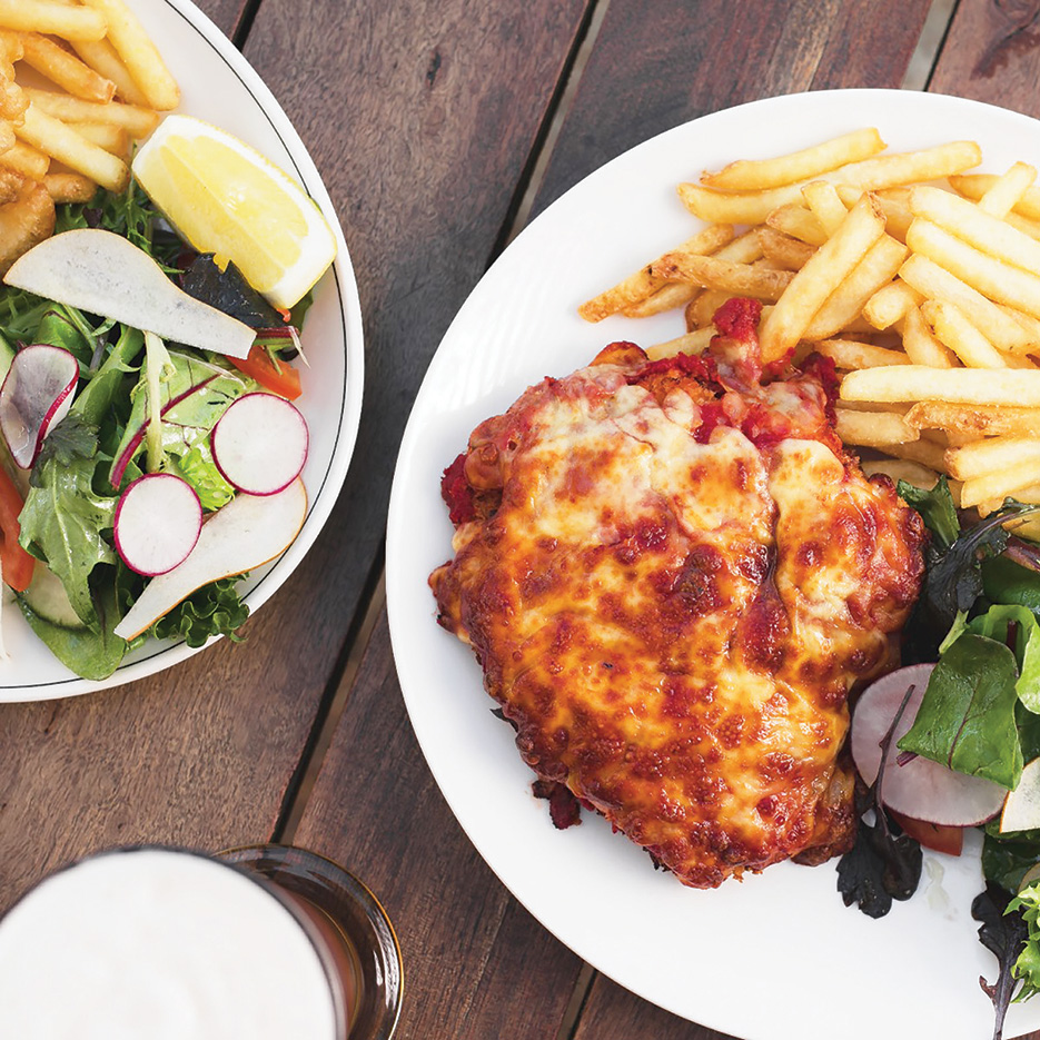 After seeing a waitress walk by with a parmi and chips bigger than Matthew Pavlich’s head, my wife and I decided to share some spiced calamari ($21), cauliflower and cheese fritters ($18) and a charcuterie board ($29).