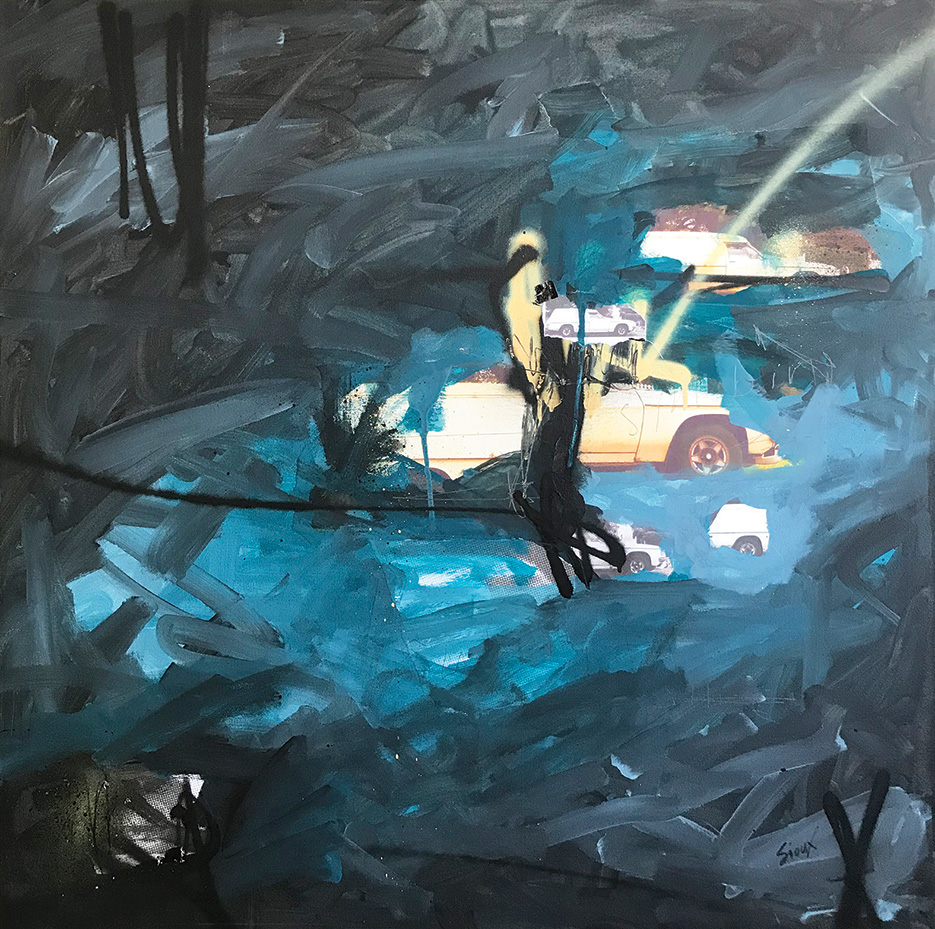 Using acrylic paint, aerosol, deconstructed paper, graphite and gaffa tape, Tempestt takes us on a chaotic and grimy tour of urban Perth.