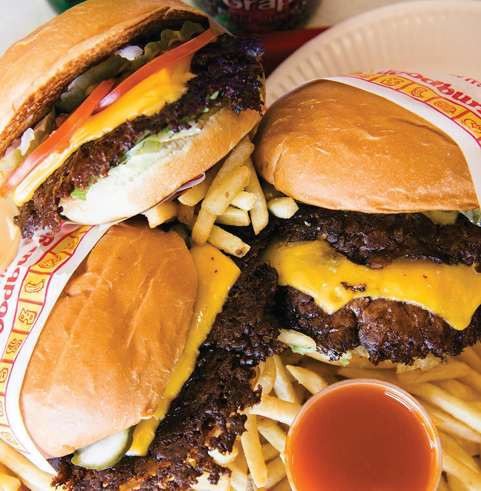 Thankfully it wasn’t long before we were tucking into our piping-hot burgers and mound of fries ($9 for two serves).