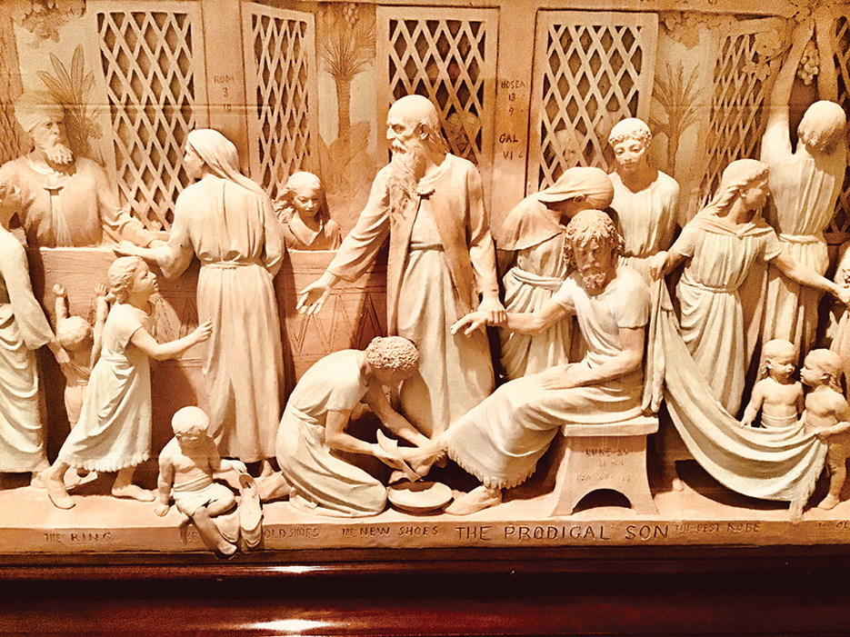 To my delight the change has revealed a gallery treasure for decades hidden from the general public: The Prodigal Son by terracotta artist George Tinworth (1843 – 1913).