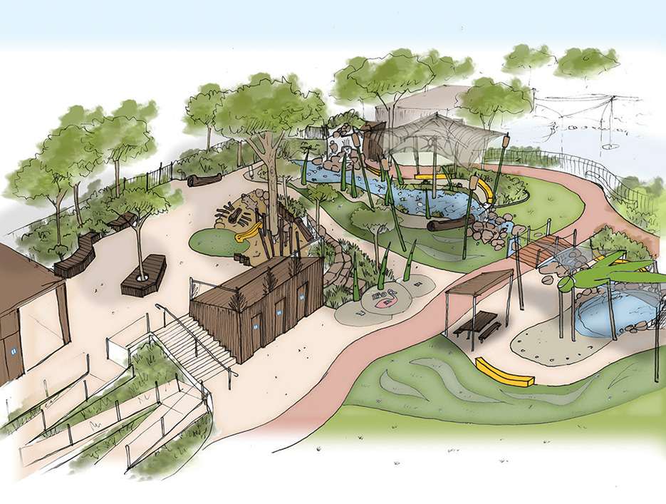 The $3.5 million first stage of the Waterland redevelopment will have a splash pad, splash pool, creek, play areas and surrounding gear for picnics and barbecues.