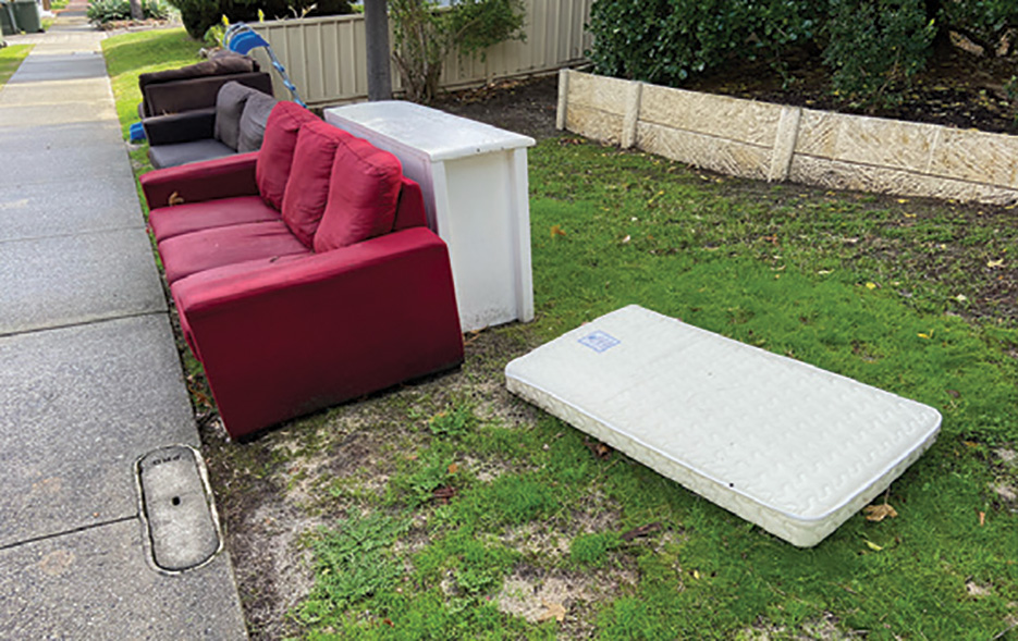 A FINAL hard rubbish collection is underway in Vincent, but the tradition of furnishing your house with verge findings has been killed off early with recent Covid concerns leading to a ban on rummaging through piles.