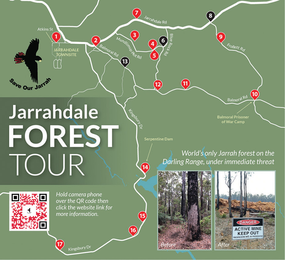 A NEW self-guided tour developed by a group of eco-warriors is encouraging city folk to head into what’s left of WA’s unique jarrah forests to see what exactly is at stake as American mining giant Alcoa pushes ahead with the expansion of its bauxite mines.