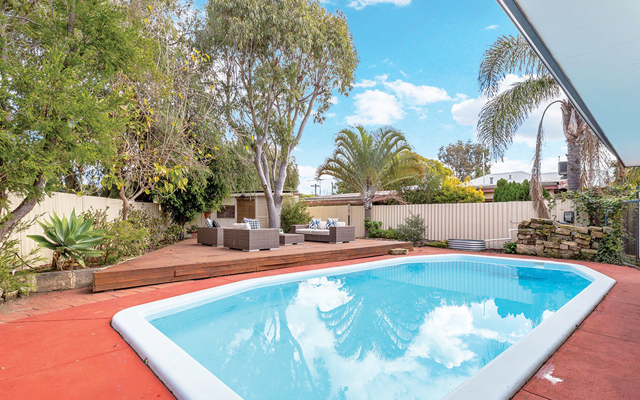 The entertaining area in the back garden is a cracker with a good-sized pool flowing into a large raised deck with plenty of room for tables, chairs and a BBQ.