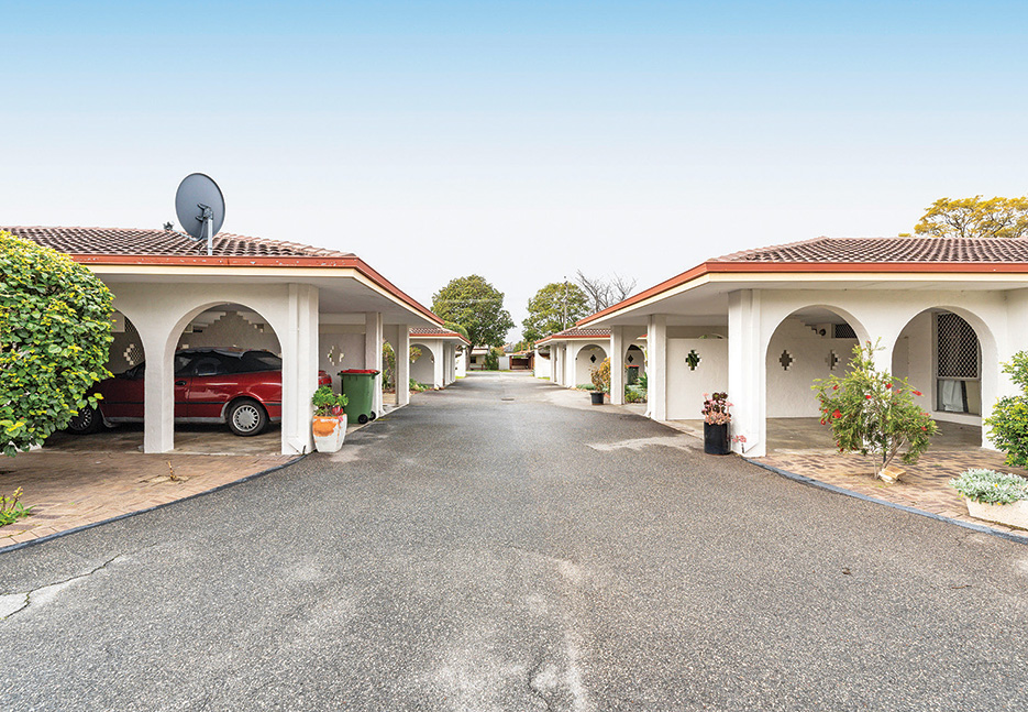 Part of a stylish complex, the graceful arches on the villas and the rising gateway at the entrance are a nod to the art deco architecture throughout Maylands.