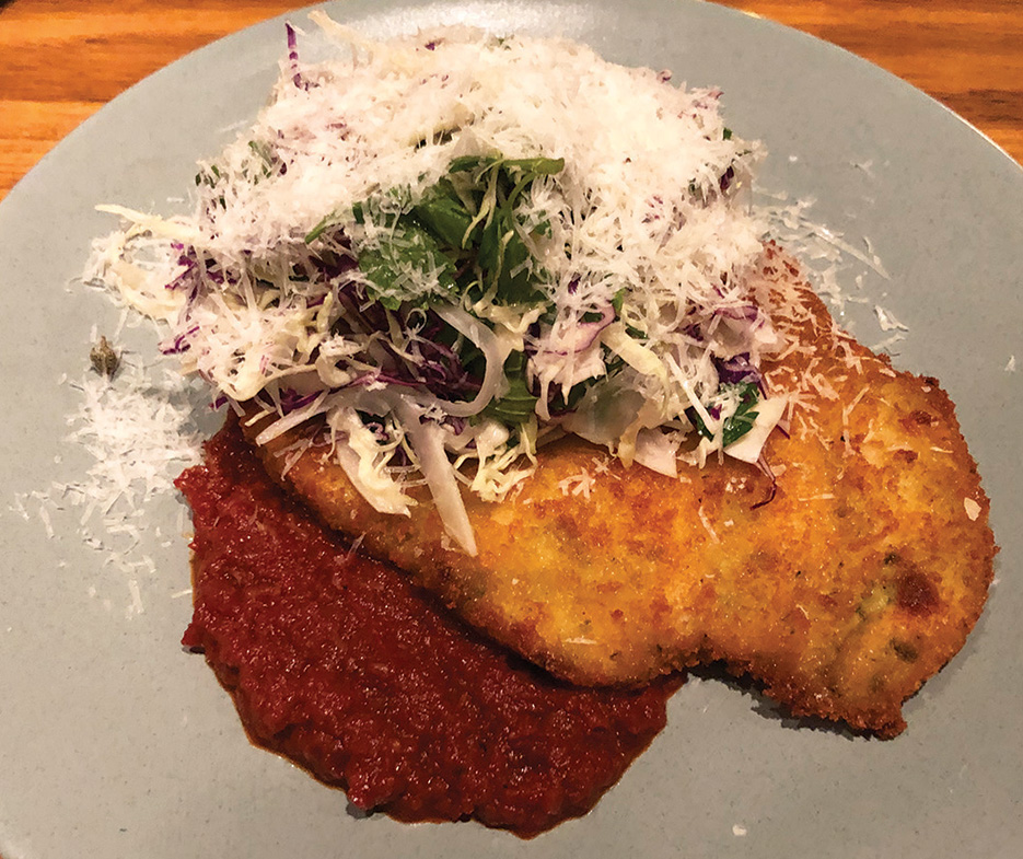I can hear you groaning “How boring”, but this was actually a deconstructed, uber sophisticated parmi with no chips – a bit like Noel Coward eating a Happy Meal.