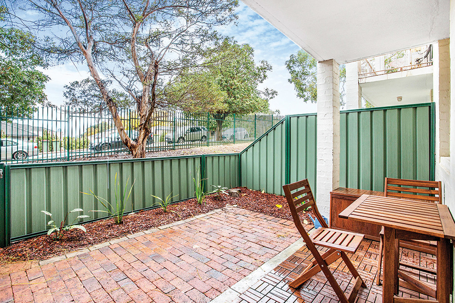 Situated on the ground floor, there’s even a decent-sized private courtyard with enough room for a table and chairs and a thin nature strip.