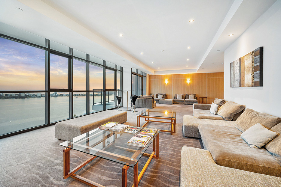 In the case of 180/181 Adelaide Terrace in East Perth, however, there are some particularly enticing features that benefit from a bit of editorialising. This massive 212sqm penthouse on the 26th floor utilises astute design principles to maximise its expansive river views, which are visible through floor-to-ceiling windows from all three bedrooms.