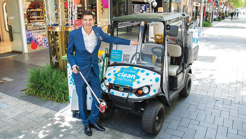 Perth council brought in the solar-powered ‘Clean Machine’ (a repurposed golf cart) last September for a trial that coincided with AFL grand final week.