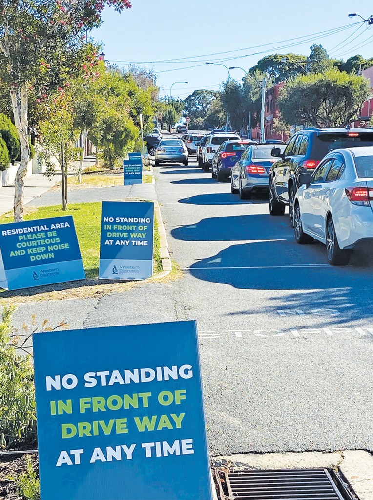 CARS queuing for Covid tests are clogging Mount Hawthorn.