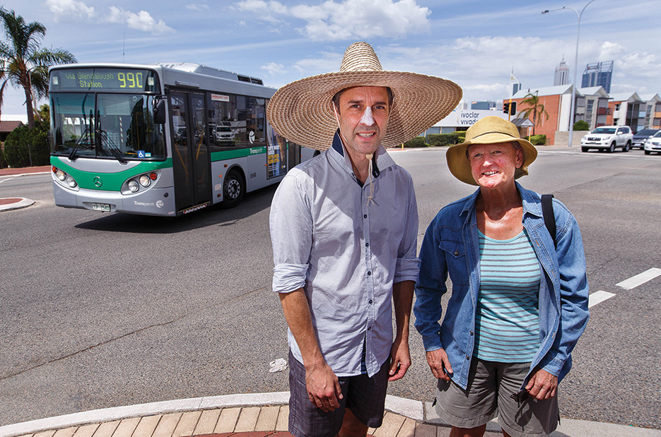 There is a pedestrian crossing at the awkwardly angled Carr Street intersection but it’s a site of frequent confusion given turning traffic gets the green light at the same time as crossing pedestrians.