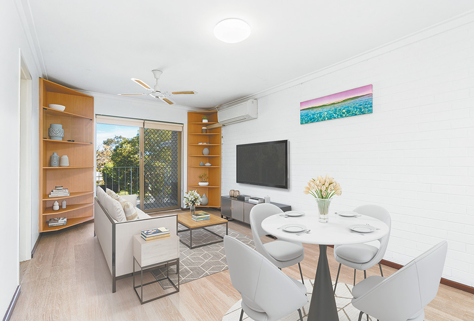 Priced at $279,000 with two bedrooms and one bathroom, it’s a very well-presented pad with lovely wooden floors.