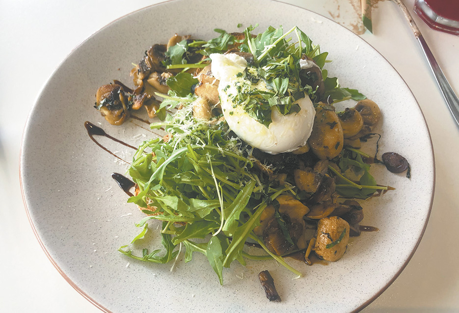 There was so much rocket on my plate I could have travelled to Alpha Centauri and back, so I dived straight in, mixing a fork-full with egg, mushroom and toasted ciabatta.