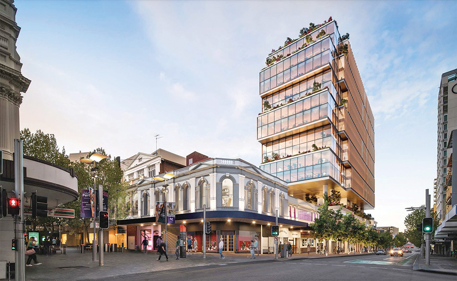 But the planning report said the developer had modified the design to minimise overshadowing onto the Hay Street Mall and was “located on the northern Murray Street Mall elevation to ensure limited impact on existing heritage buildings which will be revitalised as part of the proposal.