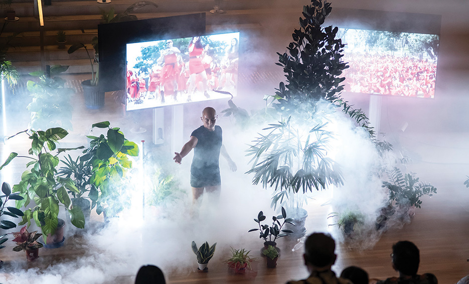 Audience members bring their own plants and are surrounded by plants during the tactile show that blends dance, video, sound and art.