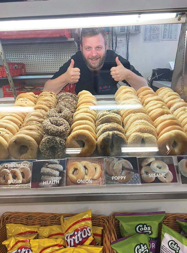 The display cabinet had a large range of freshly-made boiled bagels including sesame, blueberry, “healthy”, poppy, onion and cinnamon, made by the store’s legendary “Bagel King”.