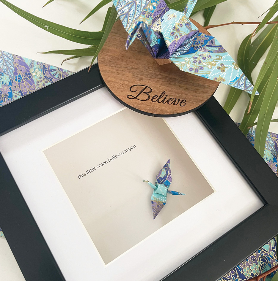 Her hand-folded cranes are now in high demand via her e-business 22Folds and sold at Australian galleries and gift stores, as well as Perth Upmarket.