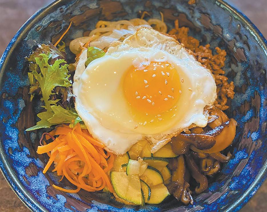 Mori also did some Korean dishes like bibimbap, a rice bowl topped with seasoned sautéed vegetables, marinated meat (usually beef), a fried egg sunny side-up, and finished with a sprinkle of sesame and a dollop of a sweet-spicy-savoury bibimbap sauce.
