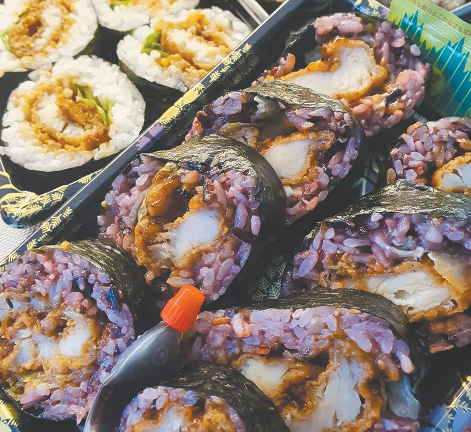 As my eyes traversed the trays of neatly-arranged sushi, a colourful creation on the 15th row tickled my fancy – tuna with red rice and chia seeds (eight for $10).