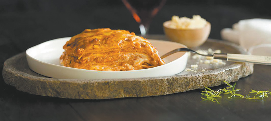 After 45 minutes in the oven at 175 degrees Celsius, the lasagne with béchamel and pappardelle were ready (both 900g).