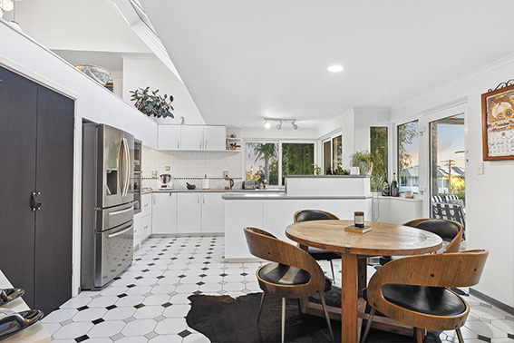 The open plan dining/kitchen area is a stunner with the distinctive floor tiles giving the space plenty of character and pizazz.