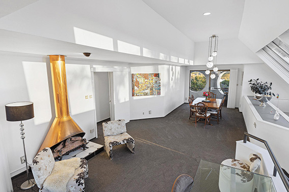 Another highlight is the formal dining area and lounge upstairs, all framed by that mammoth bank of double-glazed windows.