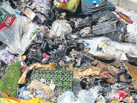 SEVEN tonnes of rubbish had to be dumped on Lincoln Street after discarded batteries started a fire inside a rubbish truck last Monday.
