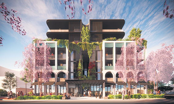 The latest project by applicant Redhorn Development Pty Ltd would amalgamate a series of blocks into 36 apartments with four commercial tenancies at ground floor, including a food and beverage offering on the corner with Wilberforce Street.