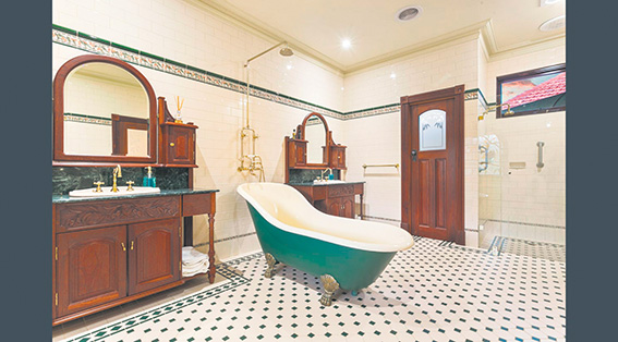Spanning over 400sqm with four bedrooms, two bathrooms and a four-car garage, it combines style with practicality in an elegant package. The craftsmanship is second to none with solid jarrah doors, handmade staircase, period fireplaces, windows sashes and ornate architraves.