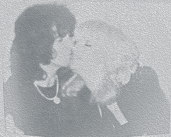 Shelley leans up against the statue of the possible cheek kisser, and because he’s balanced on an amplifier she’s sniffing at his thigh, or maybe it’s his crotch.