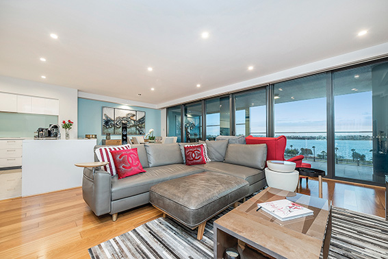 Apartment 22 enjoys wide open views of the Swan River and beyond from the living area and master suite.