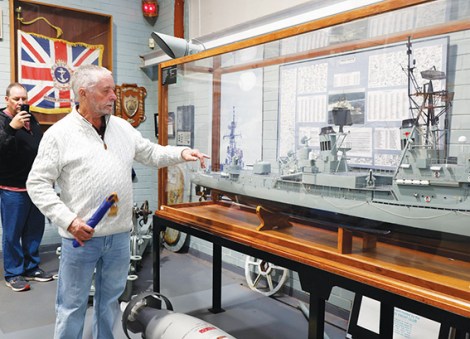 Queensland branch president Darrell Neil and secretary Terry McLeod presented memorial chairman Mike Bailey with three pictures of the three HMAS Perths.