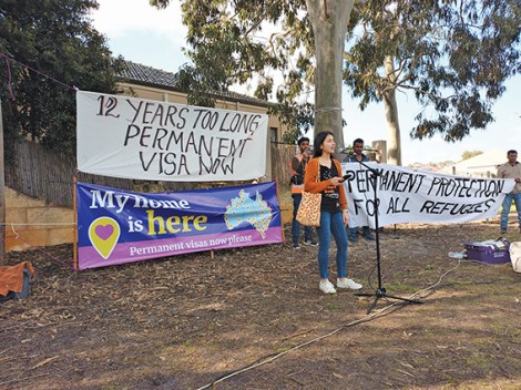 The protesters are demanding the federal government end the practice of keeping Sri Lankan refugees on bridging visas that deny them the right to work, study and receive health care.