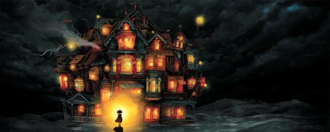 In the picture book, a lonely house flies untethered into the sky, where it saves a young girl in peril. As she explores her new shelter, she wanders from room to room, absorbing the amazing house she now inhabits – a calm haven in a raging storm.