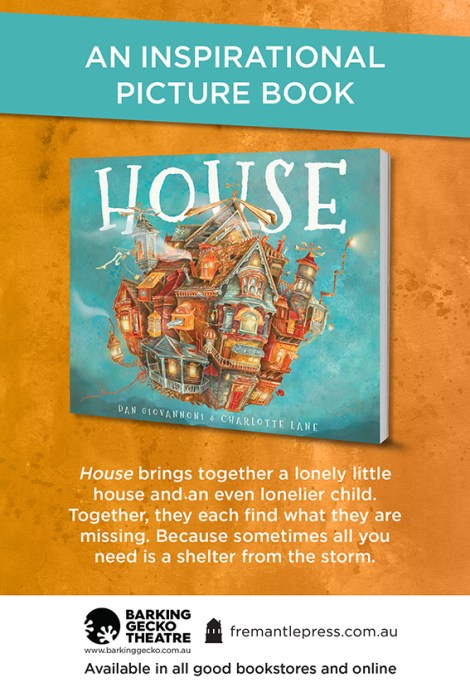 Tickets are now on sale on the Barking Gecko Theatre website. There will be an AUSLAN Interpreted Performance on Saturday, November 2 at 10 am. The picture book will be available in all good bookstores and online. For more information, go to the Fremantle Press website https://fremantlepress.com.au/books/house/