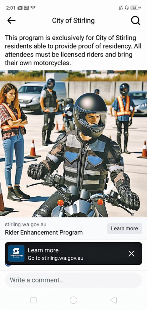 The City advertised a rider enhancement program on its Facebook page with an image generated through the Microsoft program Copilot.